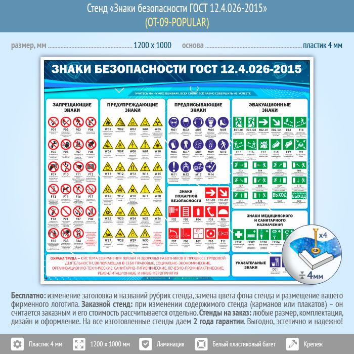 Стенд «Знаки безопасности ГОСТ 12.4.026-2015» (OT-09-POPULAR) в Иркутске купить