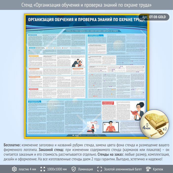 Стенд «Организация обучения и проверка знаний по охране труда» (OT-08-GOLD) в Иркутске купить