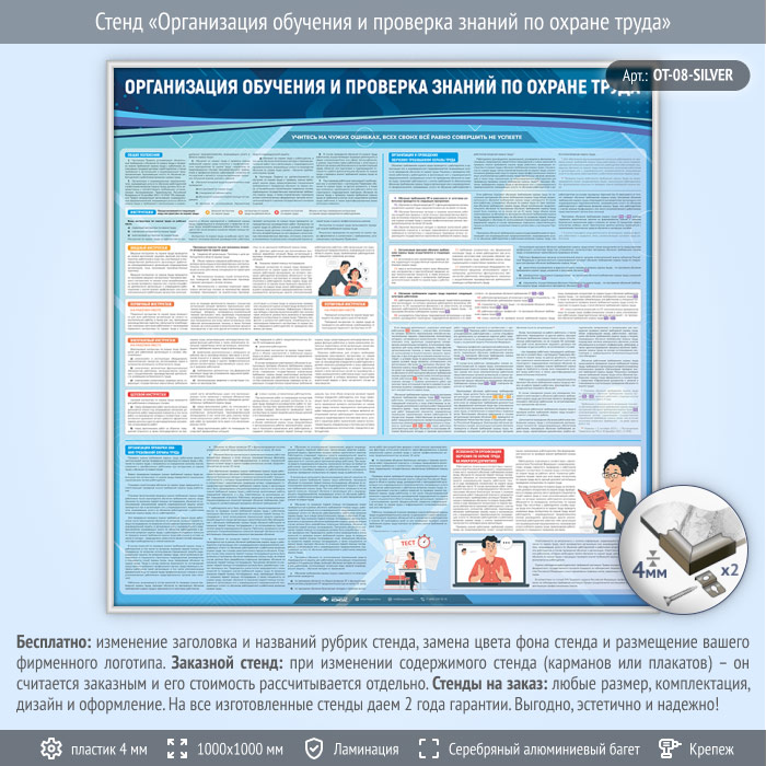 Стенд «Организация обучения и проверка знаний по охране труда» (OT-08-SILVER) в Иркутске купить