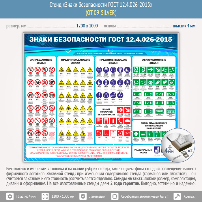 Стенд «Знаки безопасности ГОСТ 12.4.026-2015» (OT-09-SILVER) в Иркутске купить