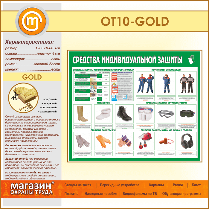 Стенд «Средства индивидуальной защиты» (OT-10-GOLD) в Иркутске купить