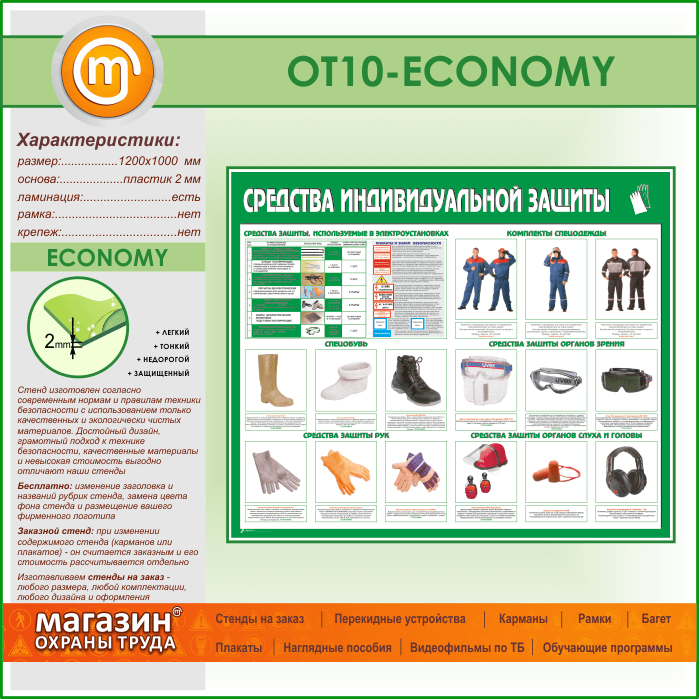 Стенд «Средства индивидуальной защиты» (OT-10-ECONOMY) в Иркутске купить