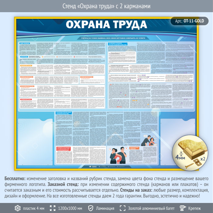 Стенд «Охрана труда» с 2 карманами (OT-11-GOLD) в Иркутске купить