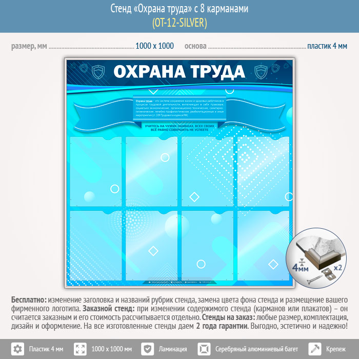 Стенд «Охрана труда» с 8 карманами (OT-12-SILVER) в Иркутске купить