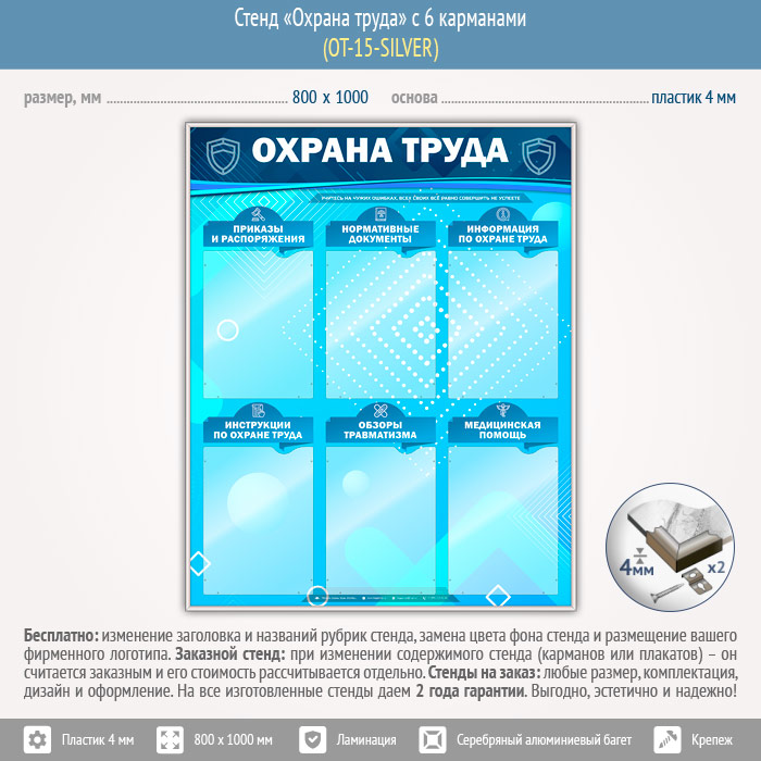 Стенд «Охрана труда» с 6 карманами (OT-15-SILVER) в Иркутске купить
