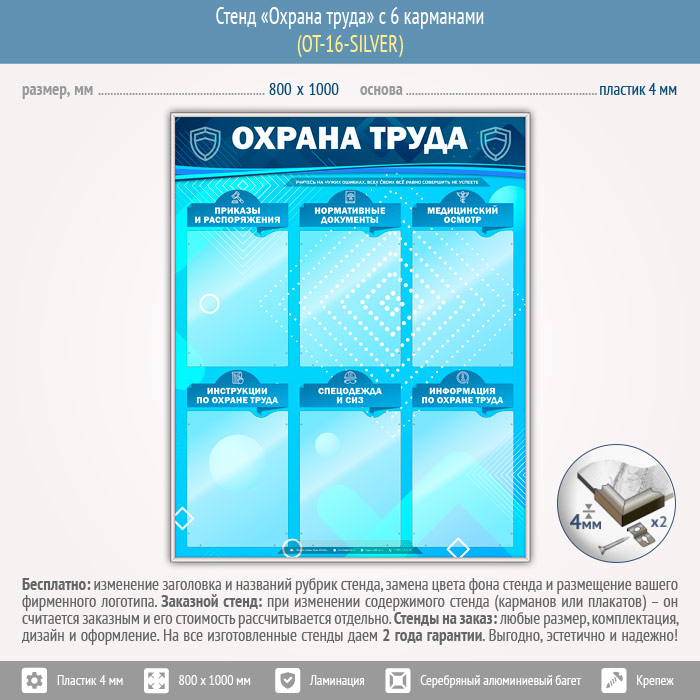 Стенд «Охрана труда» с 6 карманами (OT-16-SILVER) в Иркутске купить