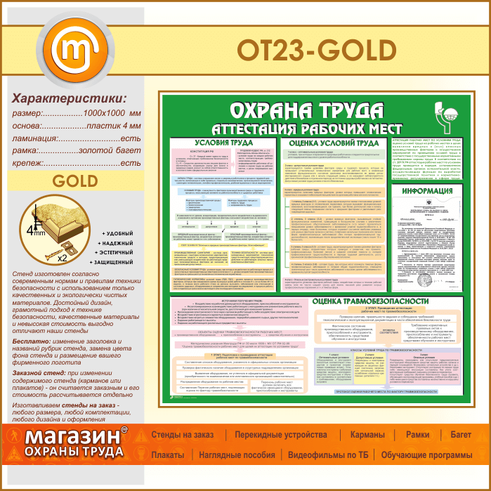 Стенд «Охрана труда. Аттестация рабочих мест» с карманом (OT-23-GOLD) в Иркутске купить