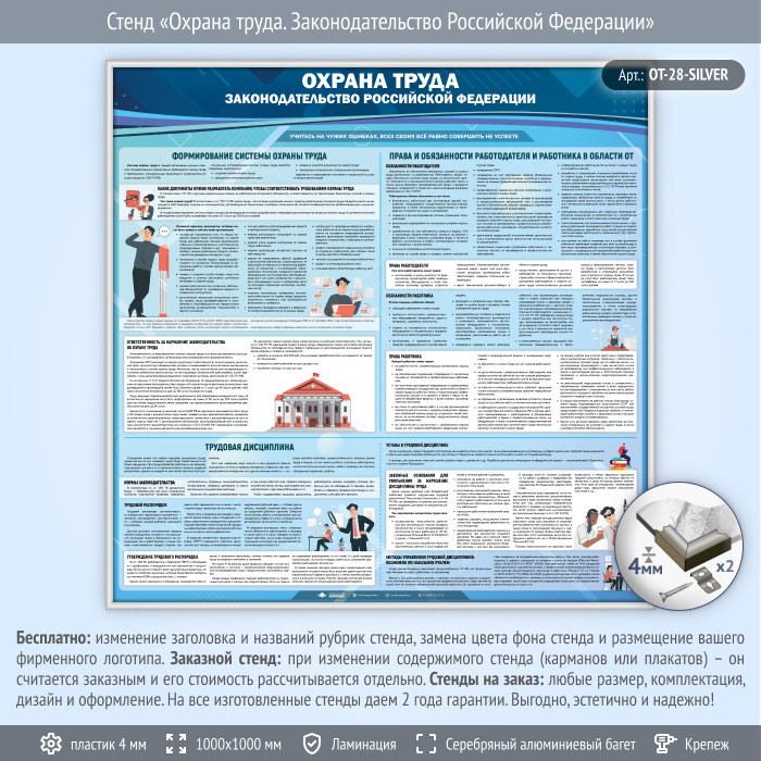Стенд «Охрана труда. Законодательство Российской Федерации» (OT-28-SILVER) в Иркутске купить