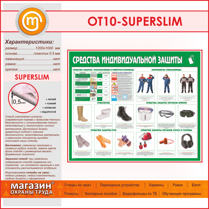 Стенд «Средства индивидуальной защиты» (OT-10-SUPERSLIM) в Иркутске купить