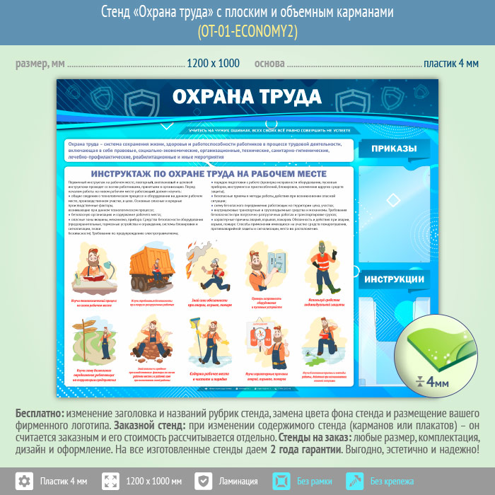 Стенд «Охрана труда» с плоским и объемным карманами (OT-01-ECONOMY2) в Иркутске купить