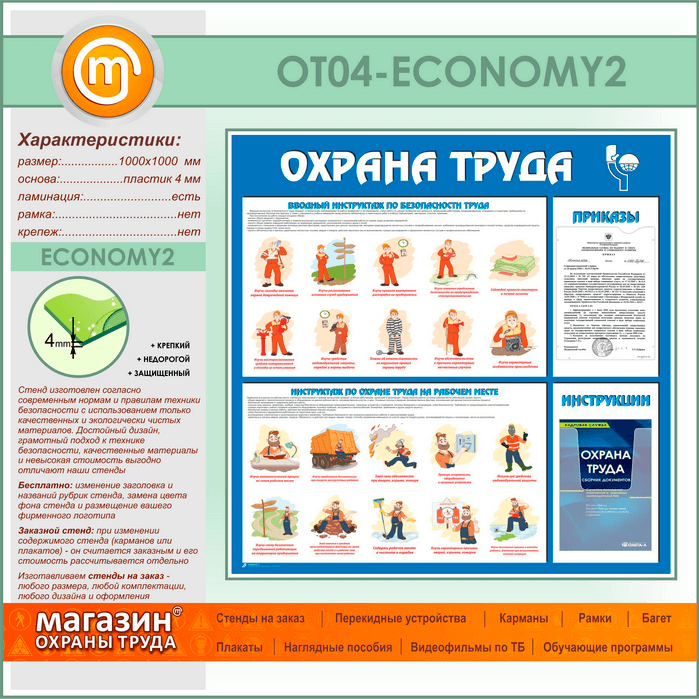 Стенд «Охрана труда» с плоским и объемным карманами (OT-04-ECONOMY2) в Иркутске купить