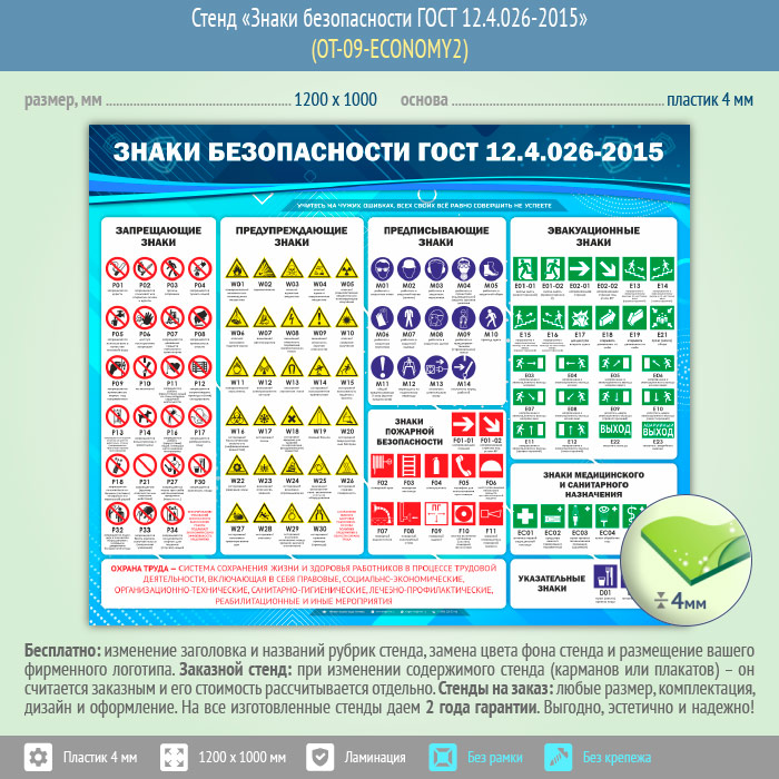 Стенд «Знаки безопасности ГОСТ 12.4.026-2015» (OT-09-ECONOMY2) в Иркутске купить