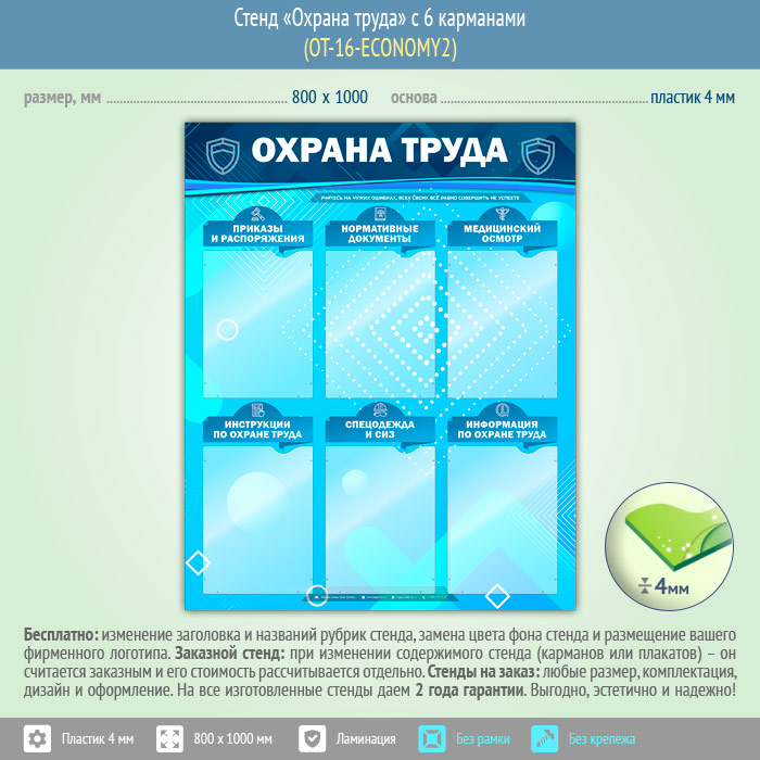 Стенд «Охрана труда» с 6 карманами (OT-16-ECONOMY2) в Иркутске купить