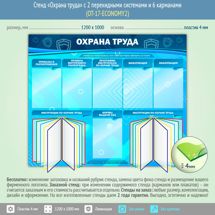 Стенд «Охрана труда» с 2 перекидными системами и 6 карманами (OT-17-ECONOMY2) в Иркутске купить