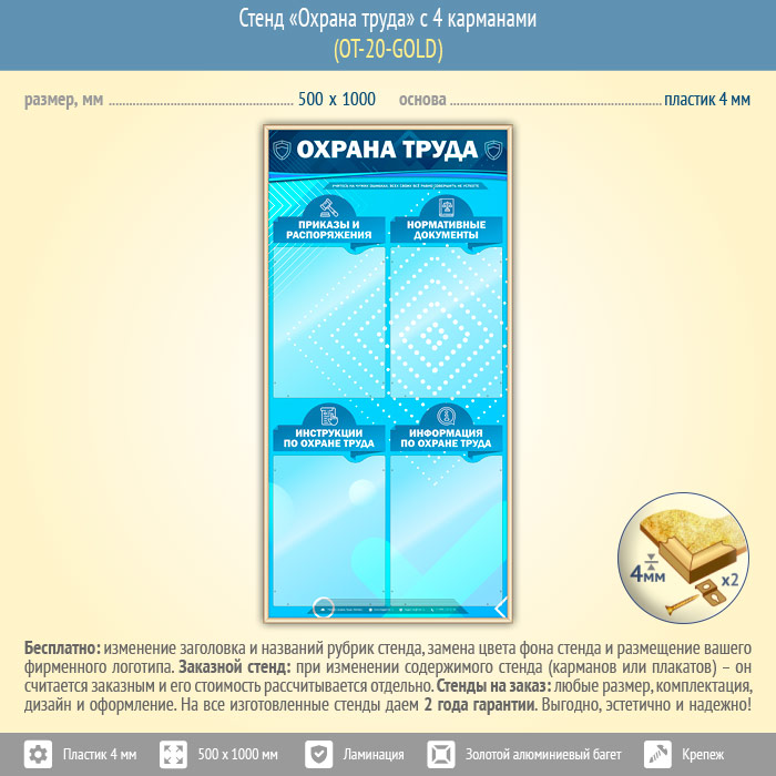 Стенд «Охрана труда» с 4 карманами (OT-20-GOLD) в Иркутске купить