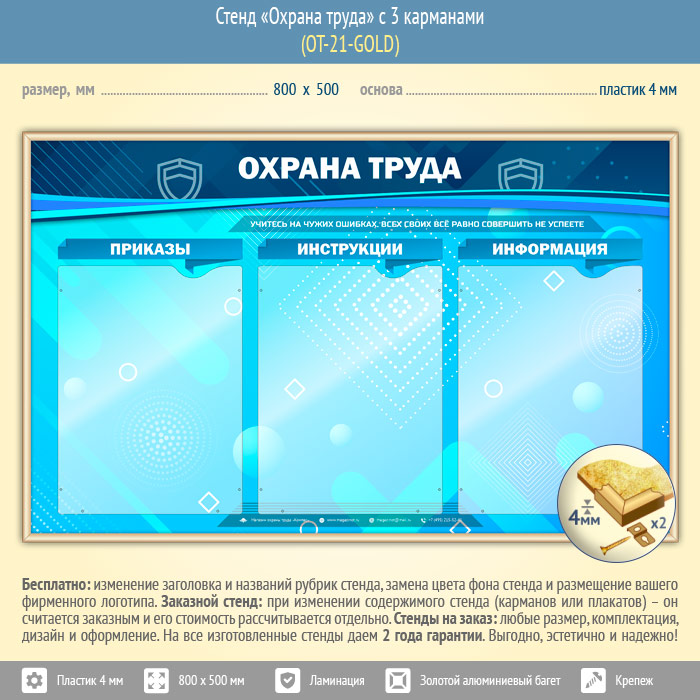 Стенд «Охрана труда» с 3 карманами (OT-21-GOLD) в Иркутске купить