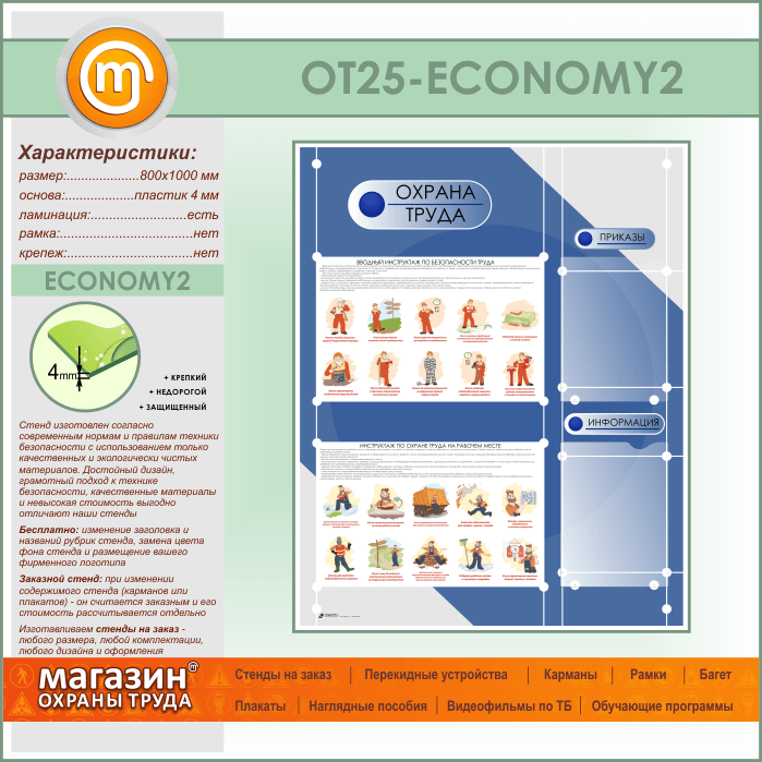 Стенд «Охрана труда» с 2 плоскими карманами (OT-25-ECONOMY2) в Иркутске купить