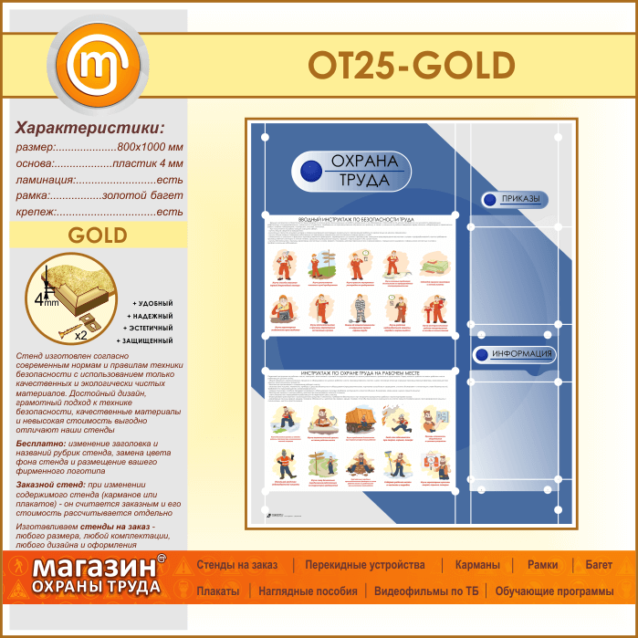 Стенд «Охрана труда» с 2 плоскими карманами (OT-25-GOLD) в Иркутске купить
