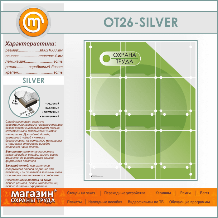 Стенд «Охрана труда» с 6 плоскими карманами (OT-26-SILVER) в Иркутске купить