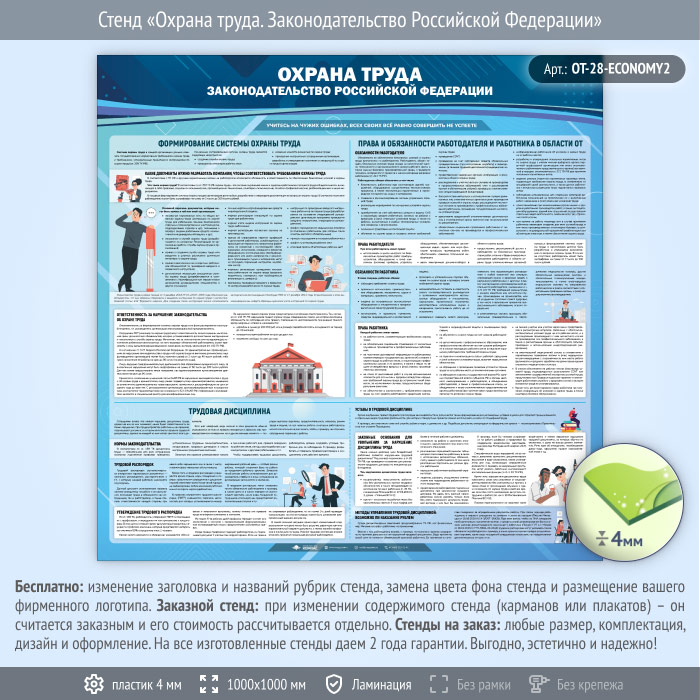 Стенд «Охрана труда. Законодательство Российской Федерации» (OT-28-ECONOMY2) в Иркутске купить