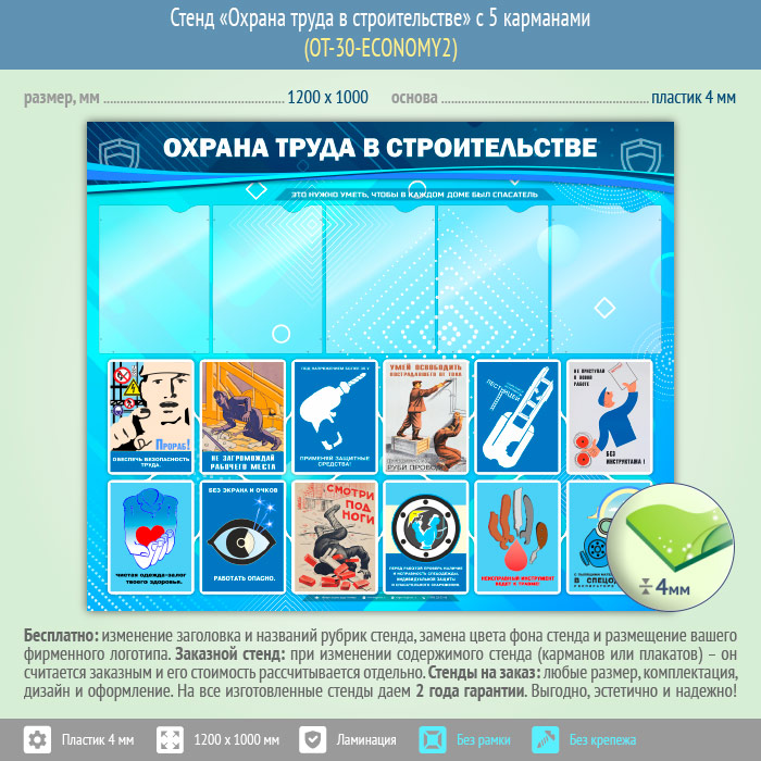 Стенд «Охрана труда в строительстве» с 5 карманами (OT-30-ECONOMY2) в Иркутске купить