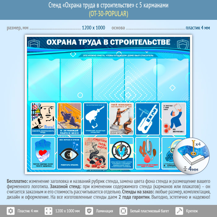 Стенд «Охрана труда в строительстве» с 5 карманами (OT-30-POPULAR) в Иркутске купить