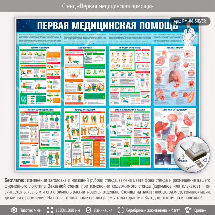 Стенд «Первая медицинская помощь» (PM-08-SILVER) в Иркутске купить