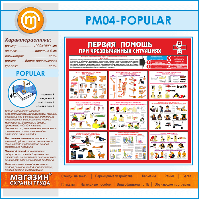 Стенд «Первая помощь при чрезвычайных ситуациях» (PM-04-POPULAR) в Иркутске купить