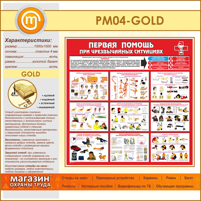 Стенд «Первая помощь при чрезвычайных ситуациях» (PM-04-GOLD) в Иркутске купить