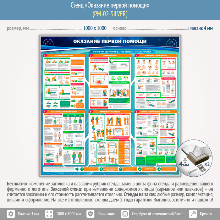 Стенд «Оказание первой помощи» (PM-02-SILVER) в Иркутске купить
