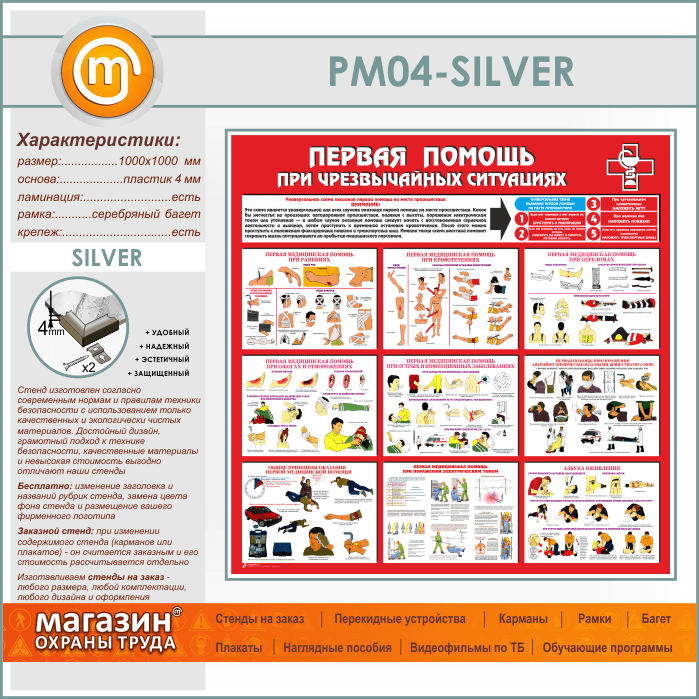 Стенд «Первая помощь при чрезвычайных ситуациях» (PM-04-SILVER) в Иркутске купить