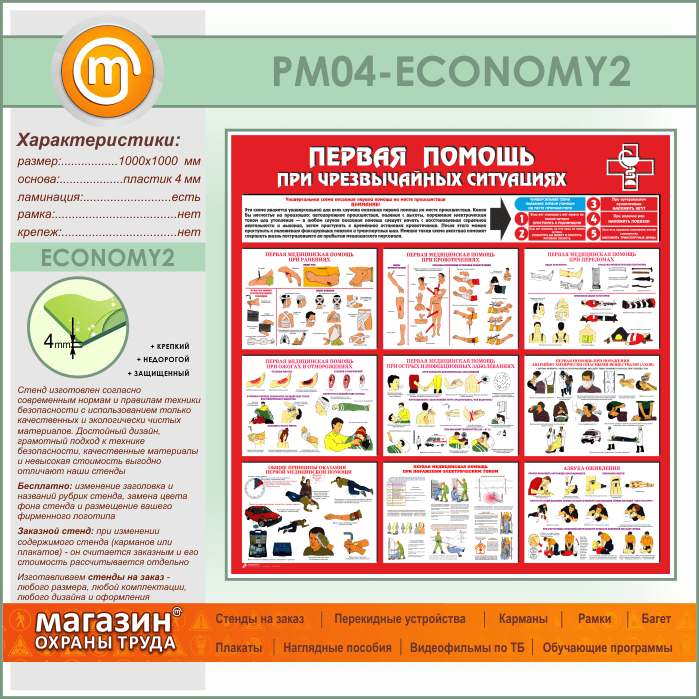 Стенд «Первая помощь при чрезвычайных ситуациях» (PM-04-ECONOMY2) в Иркутске купить