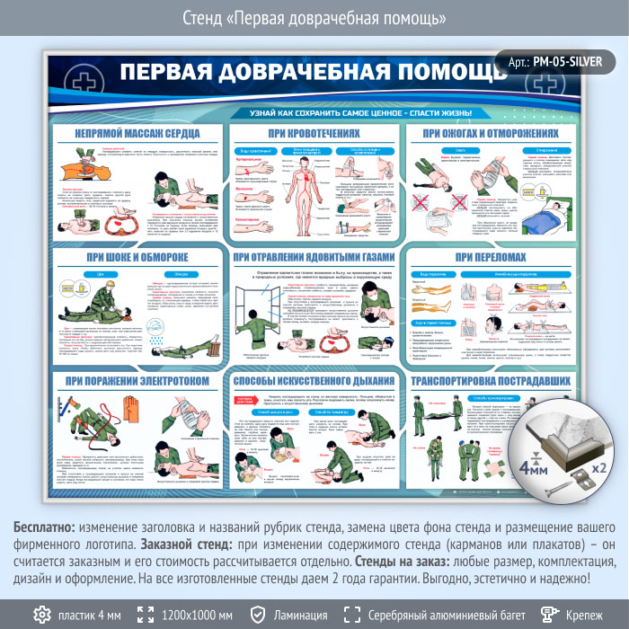 Стенд «Первая доврачебная помощь» (PM-05-SILVER) в Иркутске купить