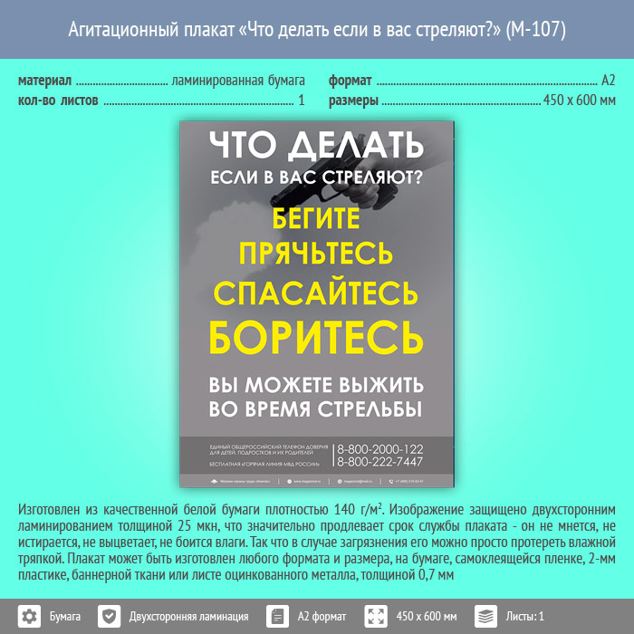 Плакат «Что делать если в вас стреляют?» (М-107, ламинированная бумага, А2, 1 лист) в Иркутске купить