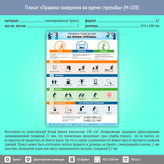 Плакат «Правила поведения во время стрельбы» (М-108, ламинированная бумага, А2, 1 лист) в Иркутске купить