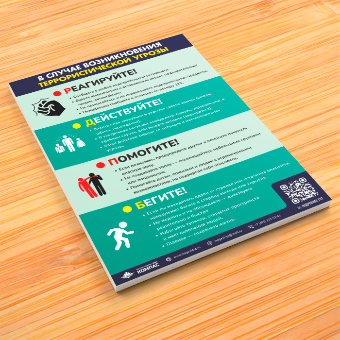 Плакат «В случае возникновения террористической угрозы» (М-109, ламинированная бумага, А3, 1 лист) в Иркутске купить