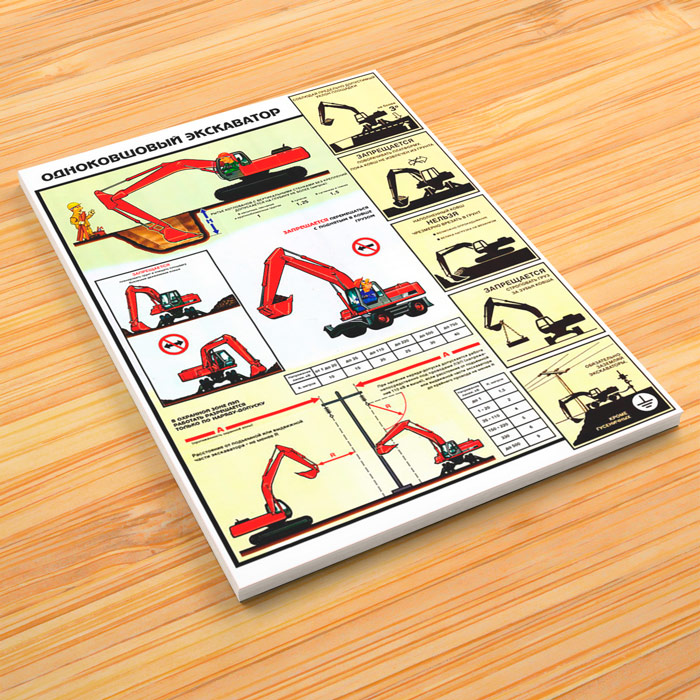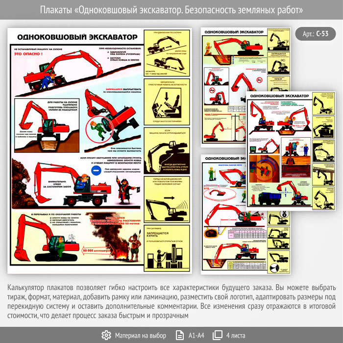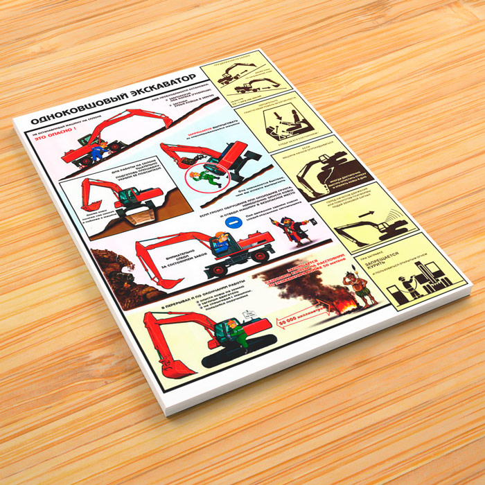 Комплект плакатов «Одноковшовый экскаватор. Безопасность земляных работ» из 4 листов – достойное качество и полезная информация по приемлемой цене