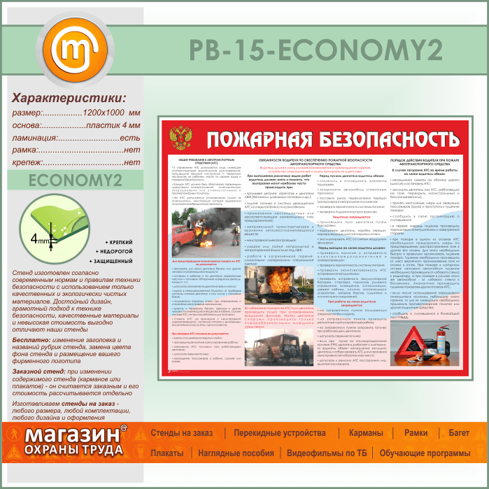 Стенд «Пожарная безопасность на автотранспорте» (PB-15-ECONOMY2) в Иркутске купить