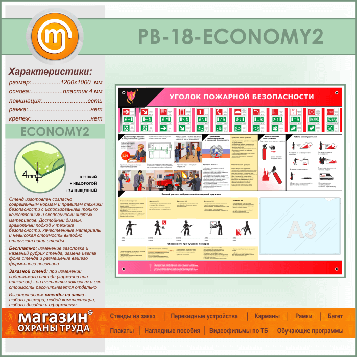 Стенд «Уголок пожарной безопасности» с карманом А3 формата (PB-18-ECONOMY2) в Иркутске купить