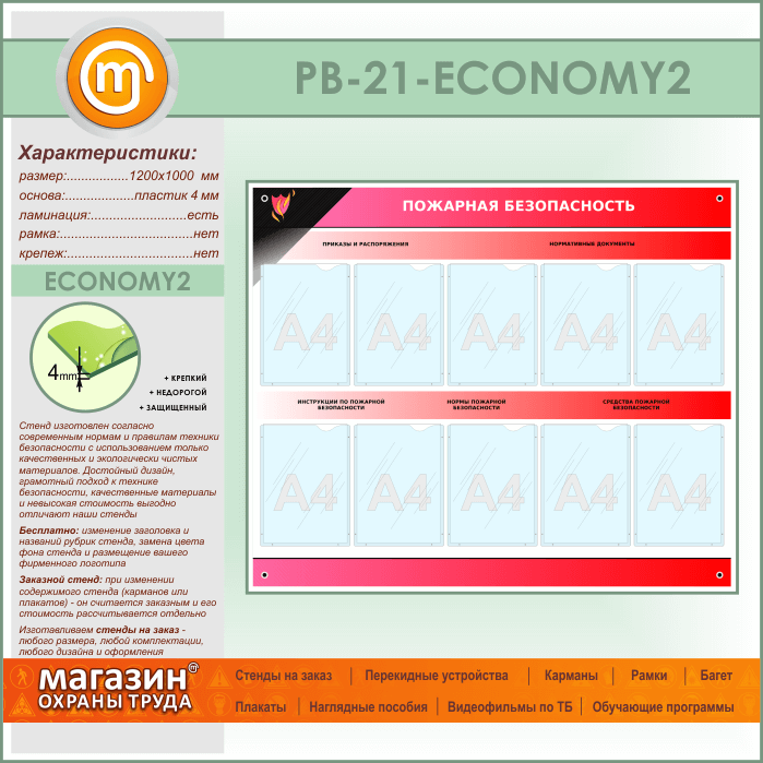 Стенд «Пожарная безопасность» с 10 карманами (PB-21-ECONOMY2) в Иркутске купить