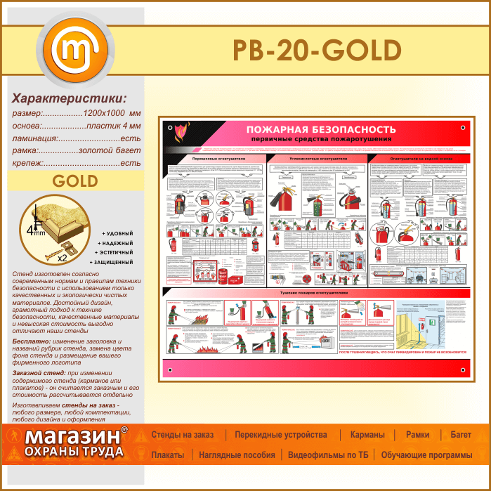 Стенд «Пожарная безопасность. Первичные средства пожаротушения» (PB-20-GOLD) в Иркутске купить