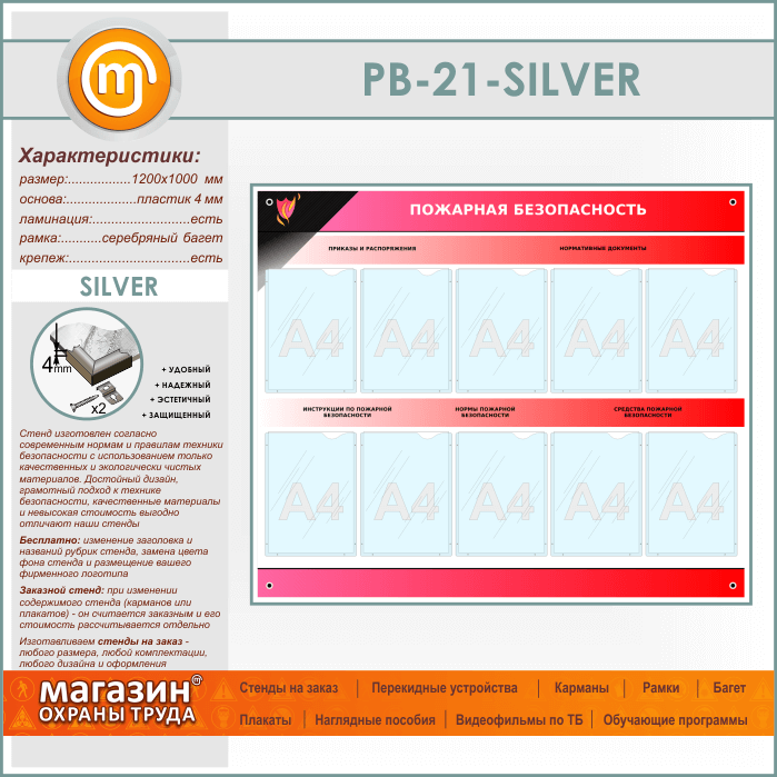 Стенд «Пожарная безопасность» с 10 карманами (PB-21-SILVER) в Иркутске купить