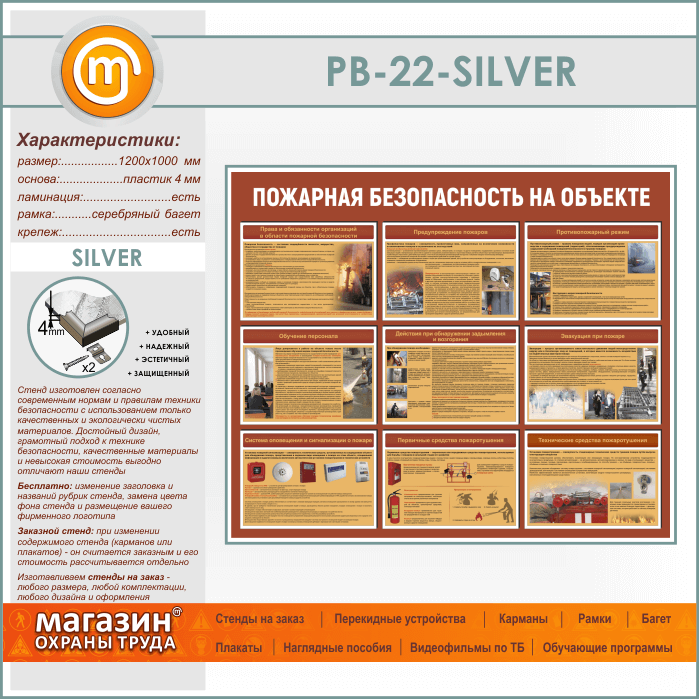 Стенд «Пожарная безопасность на объекте» (PB-22-SILVER) в Иркутске купить