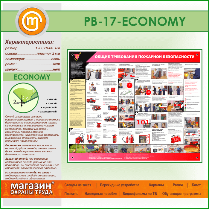 Стенд «Общие требования пожарной безопасности» (PB-17-ECONOMY) в Иркутске купить