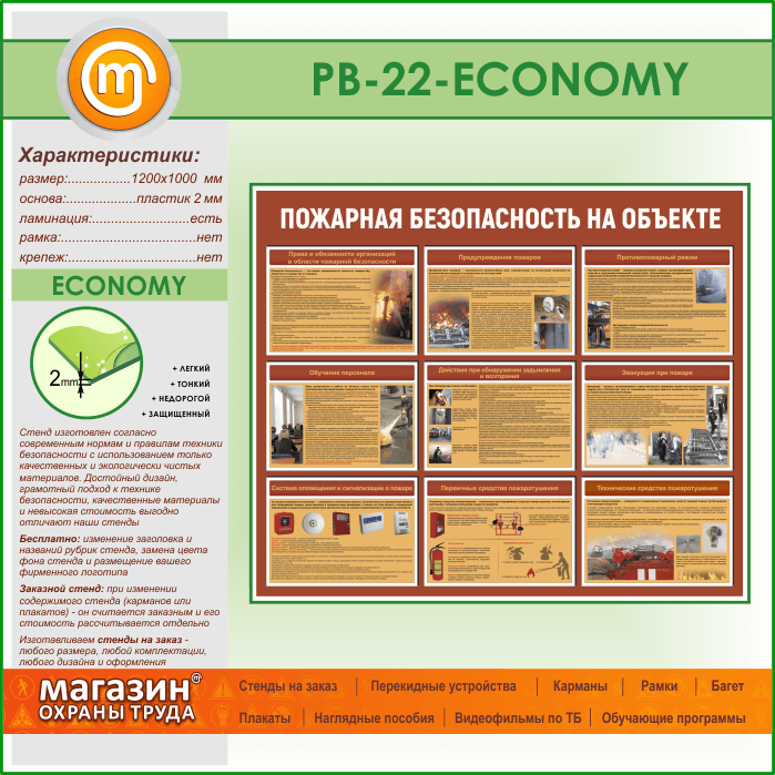 Стенд «Пожарная безопасность на объекте» (PB-22-ECONOMY) в Иркутске купить