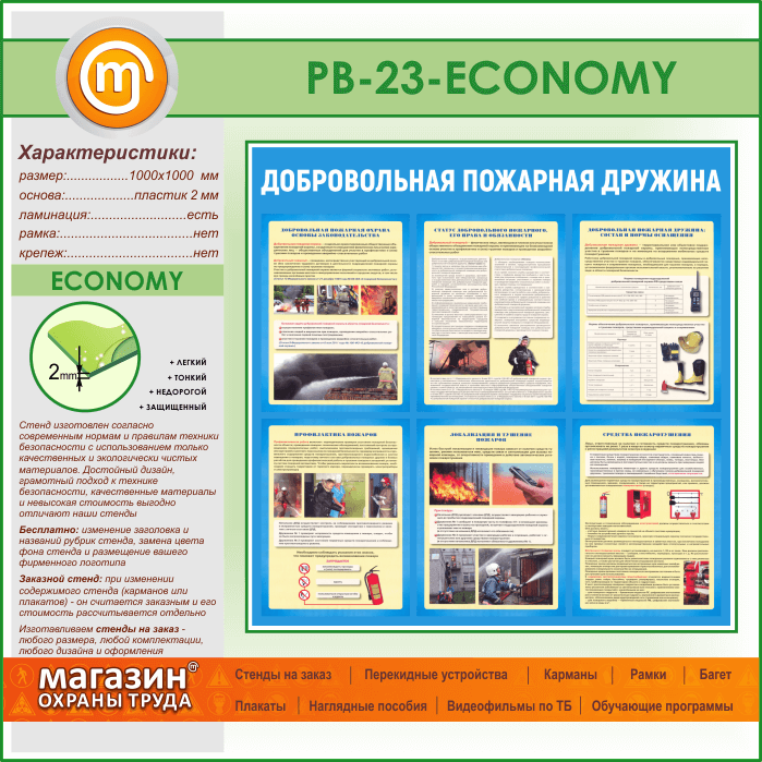 Стенд «Добровольная пожарная дружина» (PB-23-ECONOMY) в Иркутске купить