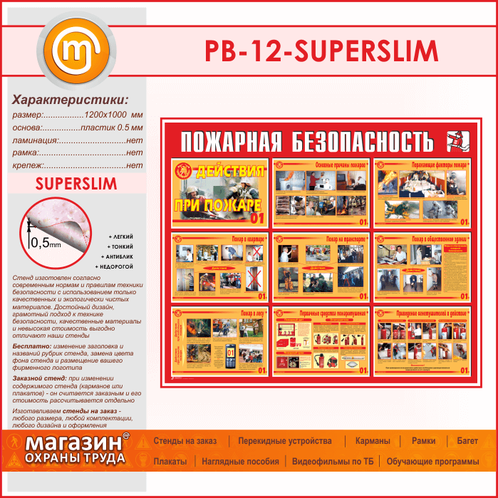 Стенд «Пожарная безопасность. Действия при пожаре» (PB-12-SUPERSLIM) в Иркутске купить