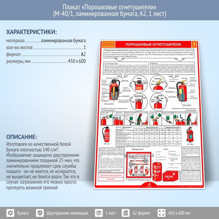 Плакат «Порошковые огнетушители» (М-40/1, ламинированная бумага, А2, 1 лист) в Иркутске купить