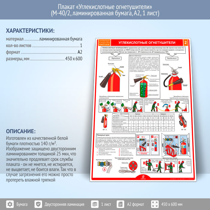 Плакат «Углекислотные огнетушители» (М-40/2, ламинированная бумага, А2, 1 лист) в Иркутске купить