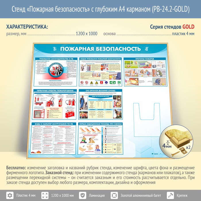 Стенд «Пожарная безопасность» с глубоким А4 карманом (PB-24.2-GOLD) в Иркутске купить